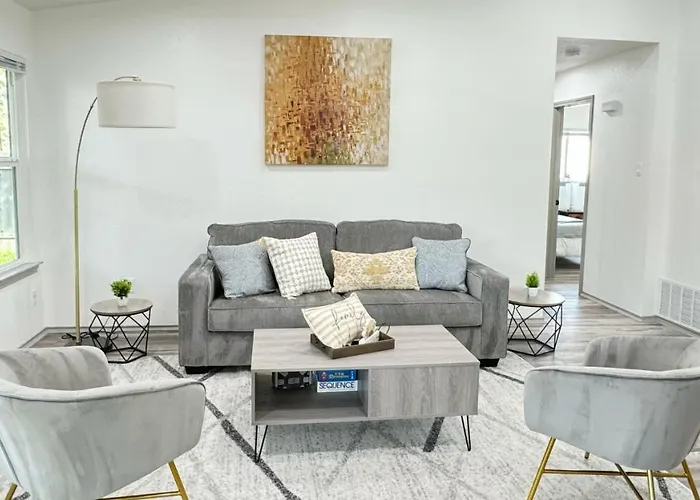 Die Villa Relax Modern 3Br 2Bath - Nw Austin, Sleeps 10 begrüßt ihre Gäste mit einer harmonischen Mischung aus modernem Komfort und einladendem Ambiente. Ideal für größere Gruppen oder Familien, bietet dieses großzügige Domizil Platz für bis zu zehn Personen.